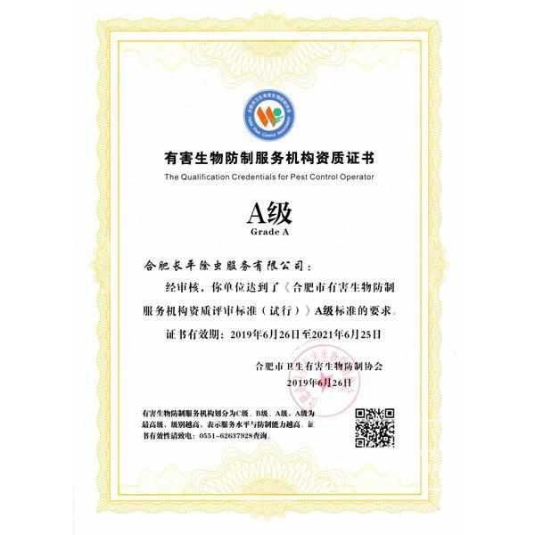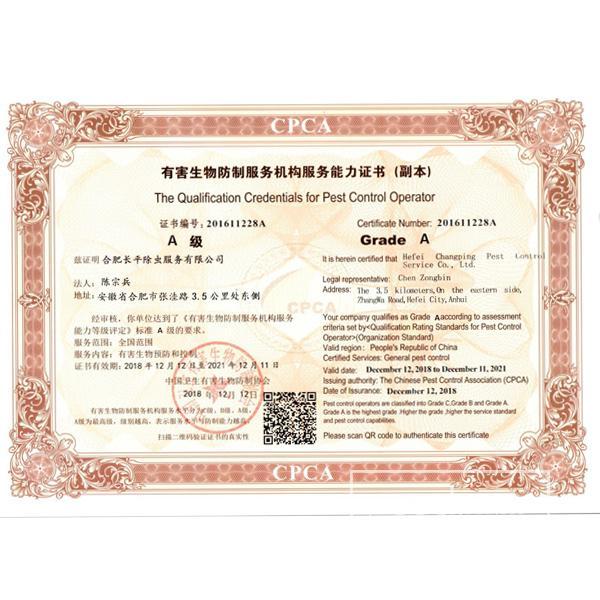 目前业务发展覆盖至安徽省内各地,拥有多家分公司和办事处。在虫害治理过程中,注重对环境的保护,采用国际领域通用的有害生物防治(IPM)及有害生物管理(PMP)等先进虫害综合管理理念,在PCO行业处于领先地位,已率先通过了国家标准:GB/T19001:2016质量管理体系认证、GB/T24001:2016环境管理体系认证、GB/T28001:2011职业安全管理体系认证,并通过信用评级,为AAAAA级信用企业;并在2016年度荣幸被评为“政府采购优秀供应商”。