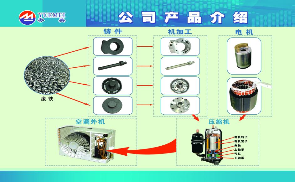 马鞍山市粤美金属制品科技实业有限公司成立于2011年,主要生产国内外知名品牌的精密压缩机零部件,公司下设安徽马鞍山和广东顺德两个生产厂区,占地面积500亩,现有员工2000余人,总投资超10亿元,生产年产值近15亿元,2020年荣获安徽百强民营企业称号,2021年公司新增空气炸锅等小家电产品,计划未来2-3年实现年产值30亿,力争打造马鞍山龙头加工企业。