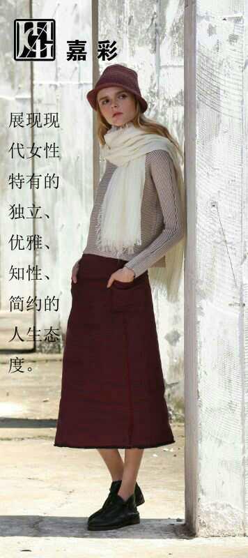 嘉彩的品牌风格是不盲从流行,简单利落的裁剪及颜色的搭配彰显深厚的功力,让所有28-48年龄的女性,驾驭出不一样的时尚姿态。穿出舒适、飘逸的时尚感觉。