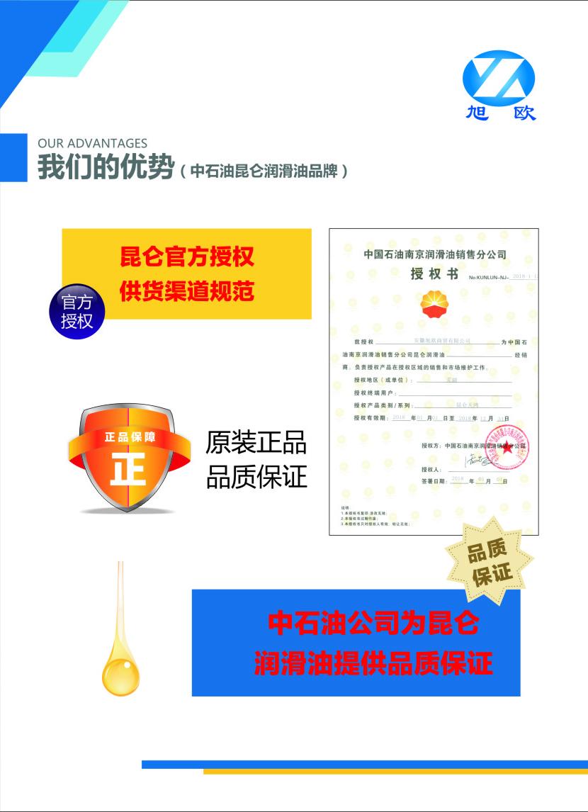 安徽旭欧商贸有限公司成立于2013年,是一家专业从事品牌润滑油销售和技术服务的公司。旭欧公司业务主要分三个方面:一、工业设备润滑与服务,二、汽车用油包括发动机油、变速箱油等;三、内河及近海中小型船舶用油。旭欧公司是德国德润宝特种润滑剂、中石油昆仑润滑油及上海涵麟润滑油的官方授权战略合作伙伴。
