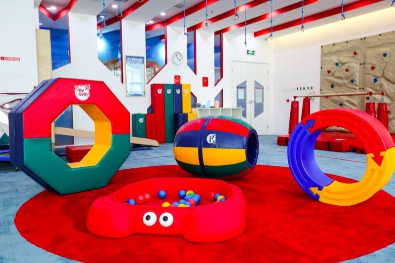 MY GYM蚌埠新地城市广场中心所有的教具均为全套进口, 拥有的秋千系统、太空飞行、攀岩墙等全套美国进口的教学设备, 先进的教学设备以及独立音响系统, 给父母和小朋友带来全新之旅!中心提供的欢动课、音乐课、艺术课是 的三大早教课程, 让您和您的宝宝在视觉、听觉和空间探索上体验 的感觉。