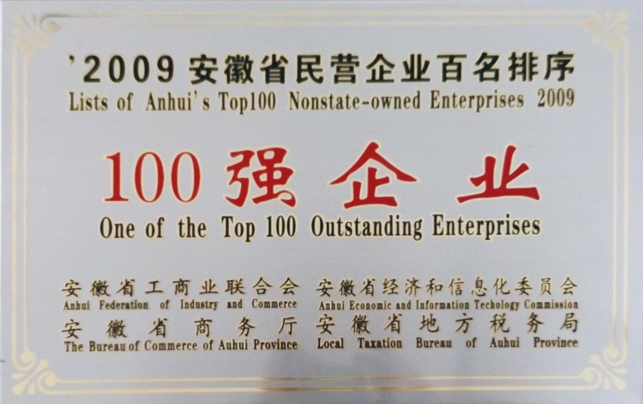 2009年,入选“安徽省民营企业100强”
