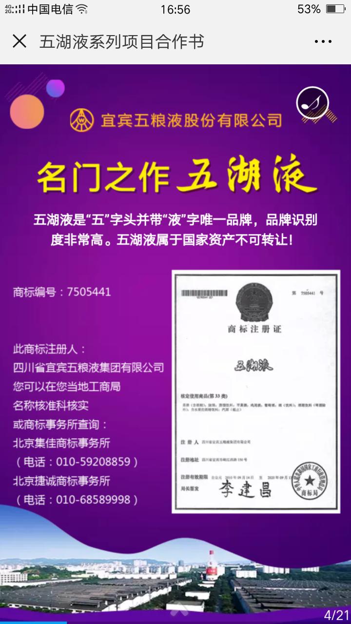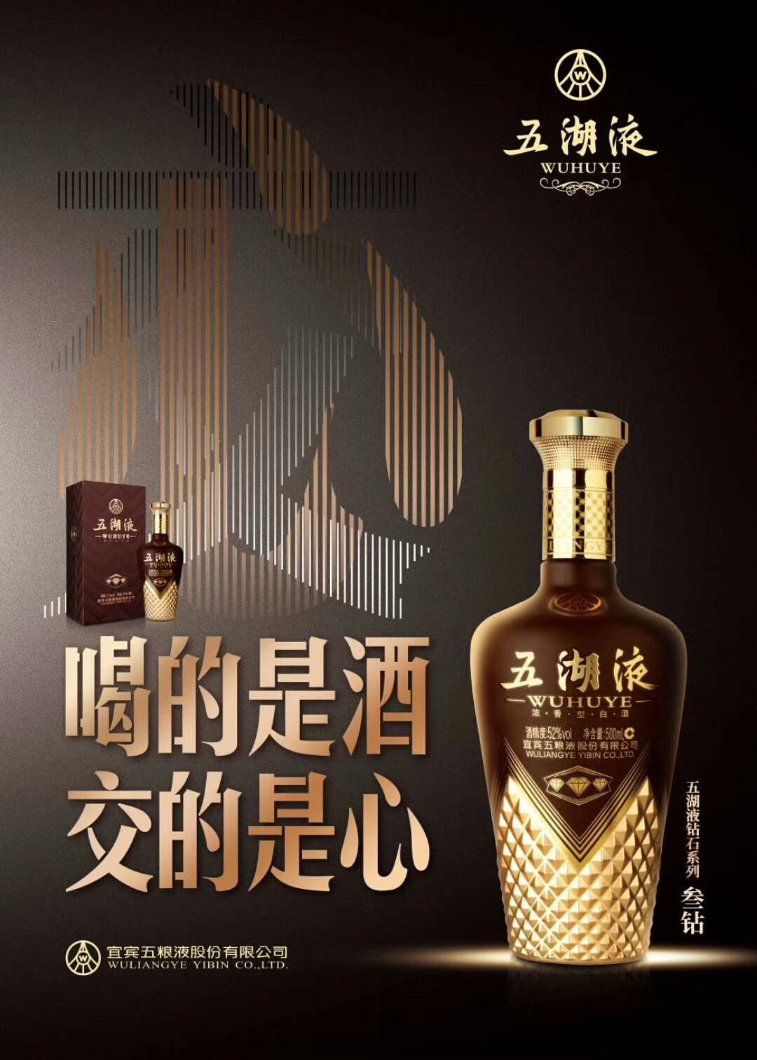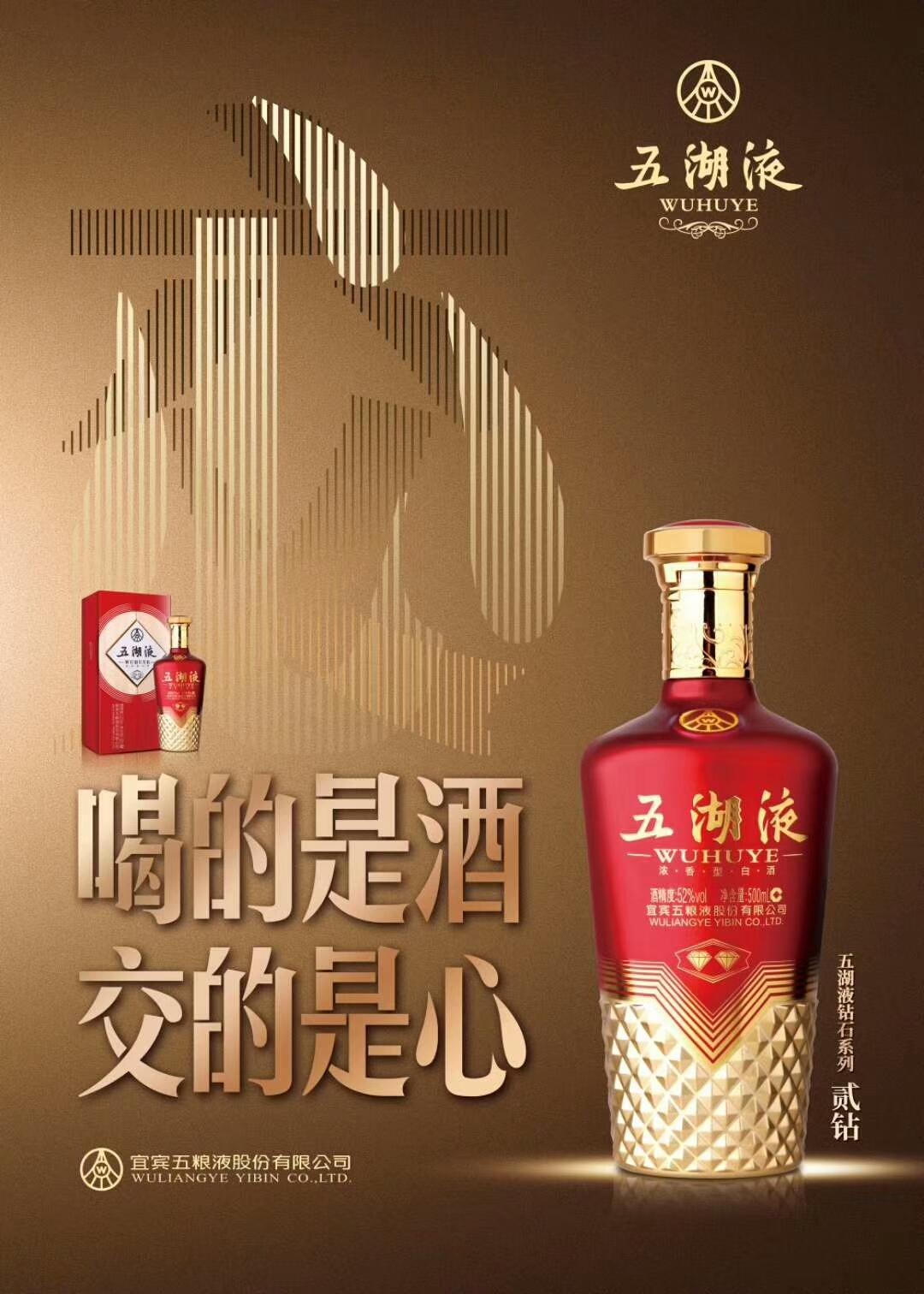 广告语“豪气达天下 情义满五湖”。五湖液是五粮液集团“五”字头并带“液”字的唯一品牌,品牌识别度非常高,也是五粮液集团申请并保留商标,归属于五粮液集团,属于国家资产不可转让。
