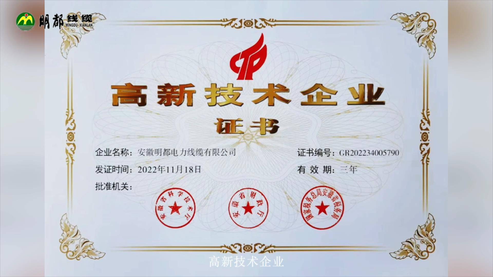 公司相继通过“QEO”管理体系认证,布电线获得“CCC”认证,“高新技术企业”、AAA级安徽省“守合同重信用”企业、安徽省“专精特新”中小企业、安徽省创新型中小企业、安徽省商标品牌示范企业等等荣誉,产品在历次国家、省级产品质量监督抽样检查中产品性能、指标全部合格。是国家质量监督检验检疫总局“AA”类工业企业产品质量分类监管单位、国家电网公司、安徽省电力公司的优秀供应商。